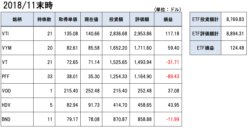 2018年11月末時点の、現在の資産内訳を更新しました。